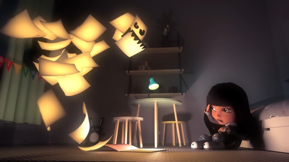 Little Nimi is disappointed with her birthday present and draws a sad emoji in her album. When the night falls, the emoji takes Nimi to a gloomy forest, where everything around seems made from paper. There the girl has to face her fears, which emerge in a form of animals and start chasing her. In despair, Nimi remembers what her mother once told her, giving a paintbox, "Now you can paint your dreams, dear". All of a sudden Nimi feels a brush with a bright purple paint in her hand. The brush absorbs all the colors and turns into a flashlight. The girl realizes that the imaginary world is not terrible at all since she can create both her dreams and fears the way she wants.
