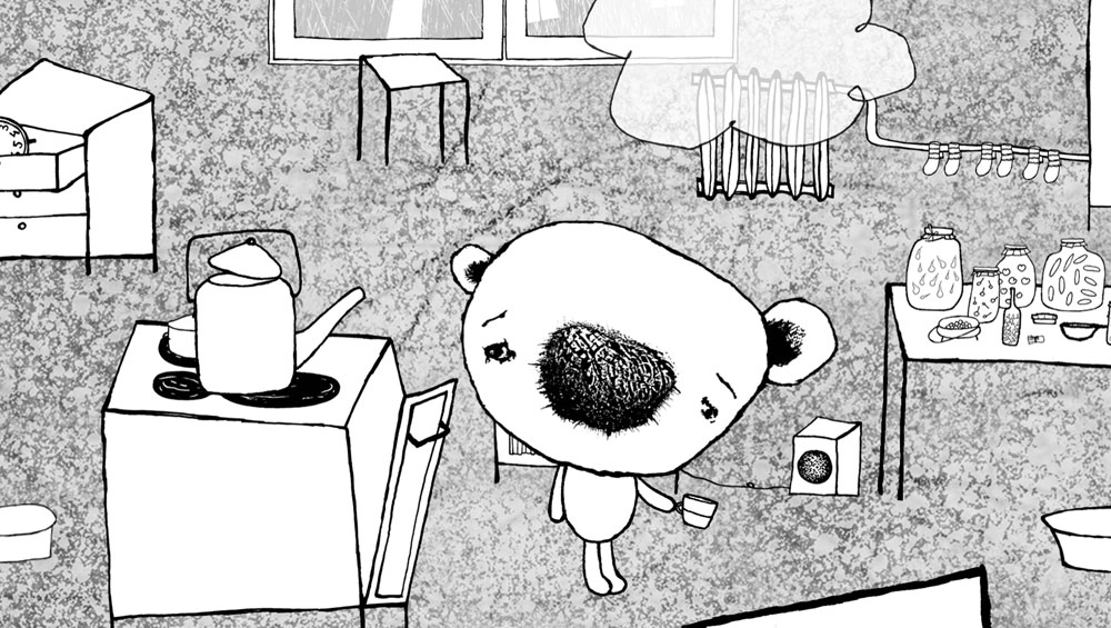 Bojo, a small bear, lives in his house alone and never goes out. Once the wind blows him out of the window…