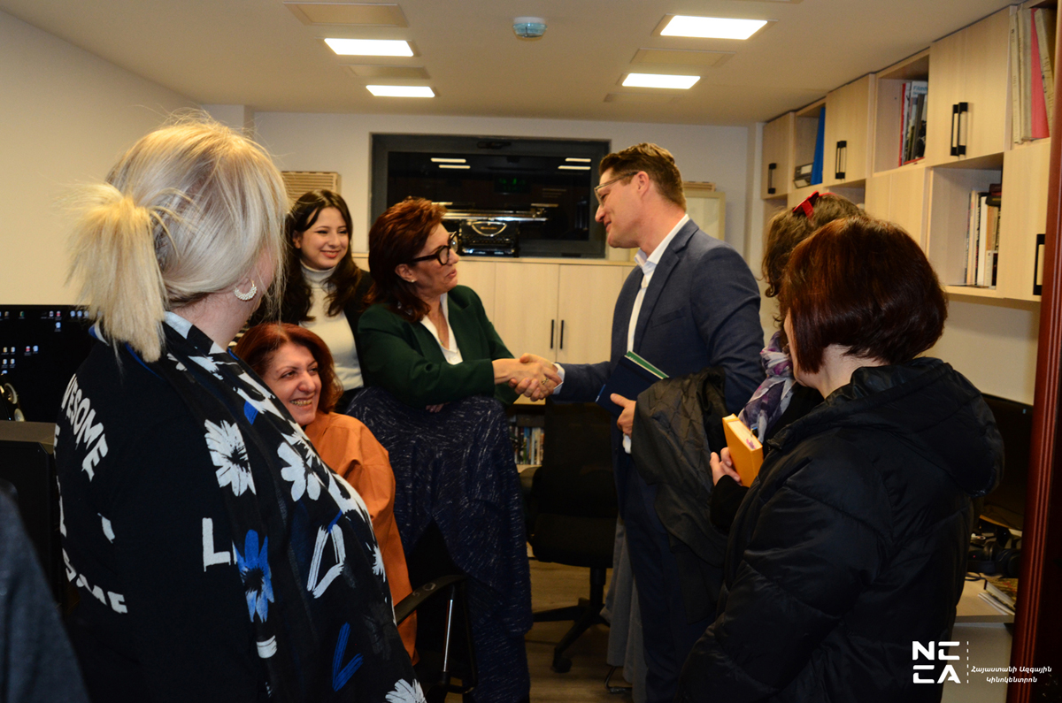 Հայաստանի ազգային կինոկենտրոնի պատասխանատուները տարիներ է, ինչ համագործակցում են Հայաստանում տեղակայված օտարերկրյա դեսպանությունների մշակութային հարցերով պատասխանատուների հետ։ Դիվանագիտական կառույցների հետ Հայաստանի ազգային կինոկենտրոնի երկարամյա համագործակցությունը ներառում է կինոոլորտում առկա երկու կարևոր բաղադրիչներ՝ հայ կինոյի հանրահռչակում և զարգացում։ Այս և այլ հարցերի շուրջ, Կինոկենտրոնի տնօրեն Շուշանիկ Միրզախանյանը, օրերս կայացած հանդիման ընթացքում զրուցել է Հայաստանում Ամերիկայի դեսպանատան մշակութային հարցերով պատասխանտու՝ Նաթան Օսթինի հետ: